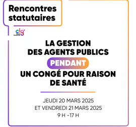 Ces rencontres statutaires sont réservées aux agents des collectivités et établissements publics affiliés au CIG Petite Couronne. Pour y accéder, vous êtes invités à vous munir de vos identifiants de connexion Convergences.