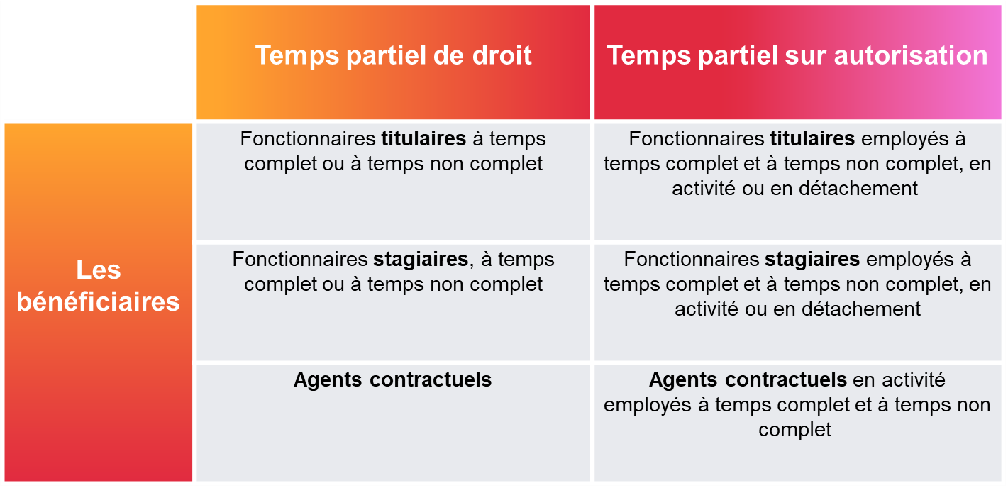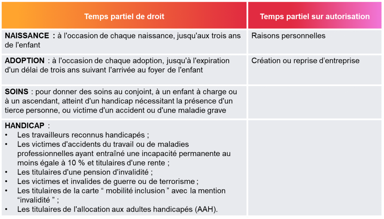 Tableau récapitulatif des différentes formes de temps partiel :