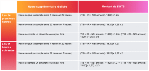 Tableau récapitulatif du mode de calcul des heures supplémentaires d’un agent territorial bénéficiant de l’IHTS par équivalence avec un corps de la fonction publique hospitalière :